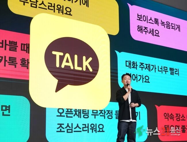 )가 지난 23일 ‘이프(if) 카카오’ 콘퍼런스에서 발표하는 모습 ⓒ카카오 제공 카카오가 다음 주부터 카카오톡 친구탭 첫 화면을 기존처럼 목록 형태로 볼 수 있게 복원한다. 지난 9월 업데이트로 인스타그램과 비슷한 피드형으로 바꾼 후 불편을 호소하는 이용자들의 비판이 쏟아지자 이를 수용한 것이다.10일 정보통신기술(ICT...