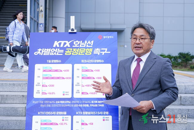 앞서 광주시는 지난 9월23일 광주송정역에서 지역 정치권, 시민들과 함께 ‘KTX 호남선 증편 촉구 결의대회’를 개최, 호남선 운행 불공정 해소와 증편 필요성을 제기했다. 이후 강기정 시장은 김윤덕 국토교통부 장관을 만나 증편의 시급성을 재차 강조하는 등 다각적인 노력을 기울였다.