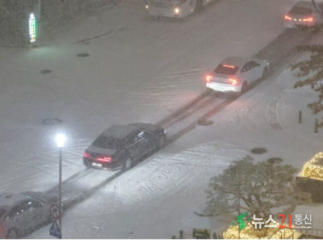[뉴스21 통신=추현욱 ] 4일 오후 수도권에 대설주의보가 발효되면서 서울 곳곳에서 폭설로 도로가 통제되는 등 교통체증이 발생했다.
