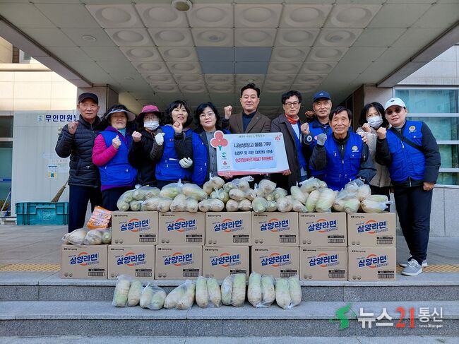 북구 송정동 바르게살기위원회는 3일 송정동 나눔냉장고에 텃밭에서 직접 재배한 김장무 200개와 라면 15박스 등 70만원 상당의 물품을 전달했다.