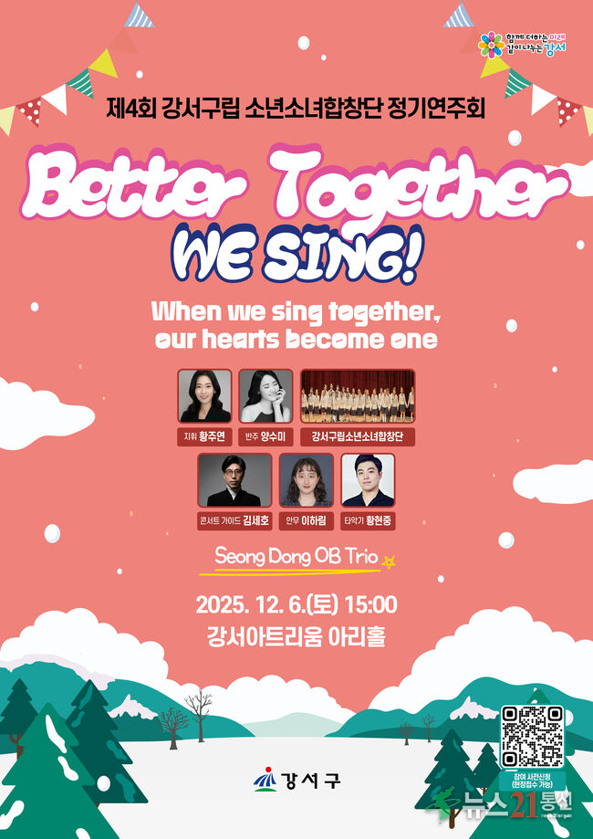 서울 강서구(구청장 진교훈)는 오는 6일(토) 오후 3시 강서아트리움(가로공원로 195)에서 ‘제4회 강서구립 소년소녀합창단 정기연주회’를 개최한다.
