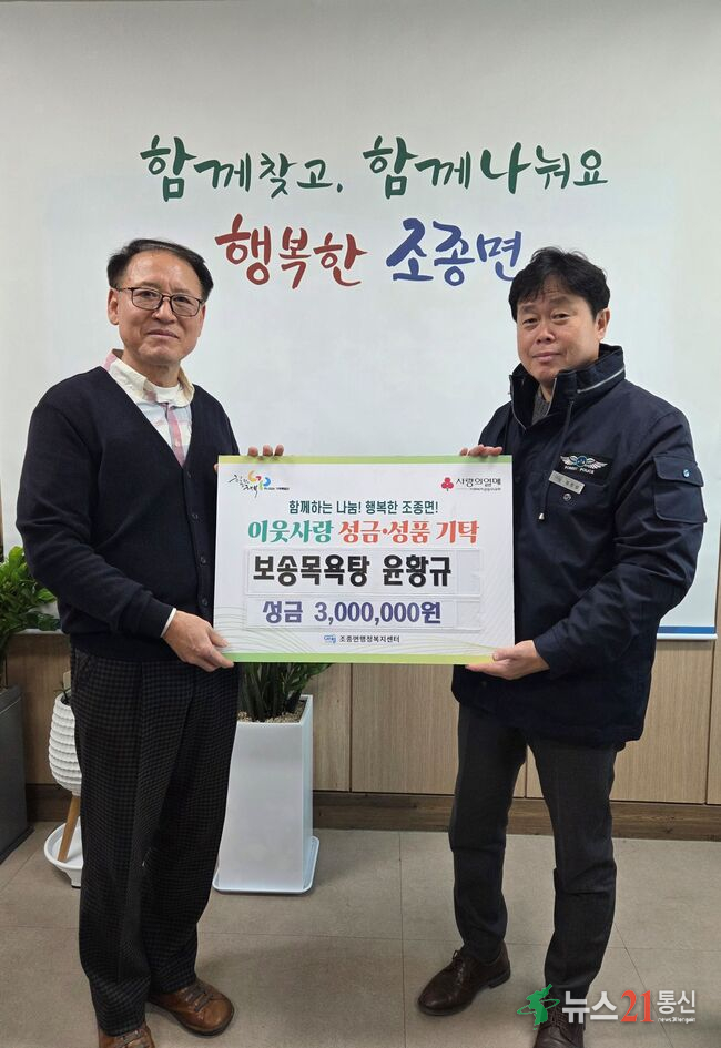 가평군 조종면 소재 보송목욕탕 윤황규 대표는 지난 5일 조종면행정복지센터를 방문해 성금 300만원을 기탁했다.