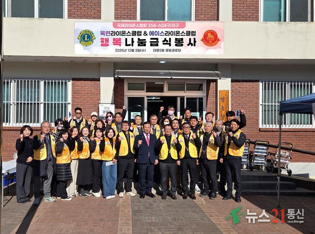 (뉴스21통신) 권혜선기자 = 대구 에이스라이온스클럽(회장 김창민)과 목련라이온스클럽(박정춘) 회원 30여 명이 대구 남구 대명3동에 위치한 명동경로당에서 지역 어르신 150여 명에게 따뜻한 식사를 대접하는 자리를 마련했다.