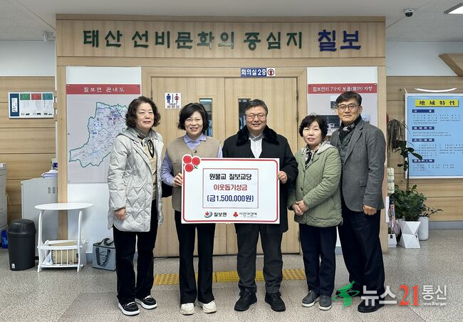 원불교 칠보교당(교무 김기성)은 지난 5일 칠보면사무소를 방문해 관내 어려운 이웃을 위해 사용해 달라며 성금 150만원을 기탁했다.