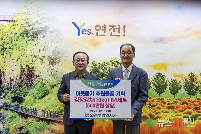 KT의정부법인지사(지사장 심영훈)는 지난 8일 연천군 취약계층을 돕기 위해 500만 원 상당의 김장김치 10kg 84세트를 기탁했다고 밝혔다.