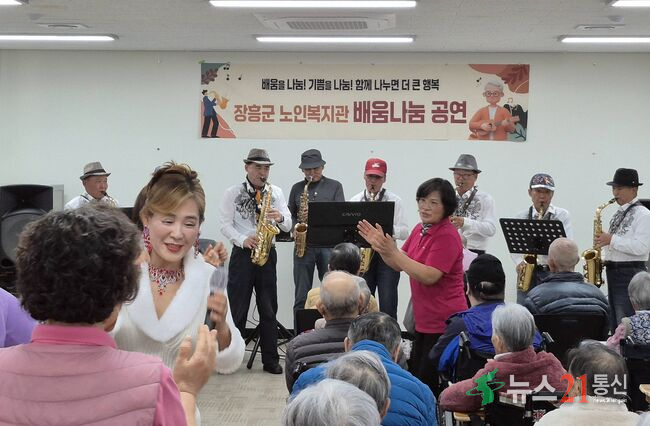 장흥군 노인복지관은 9일 장흥노인전문요양원을 방문해 복지관 음악프로그램 참여 어르신들이 준비한 찾아가는 음악공연을 진행했다고 밝혔다.