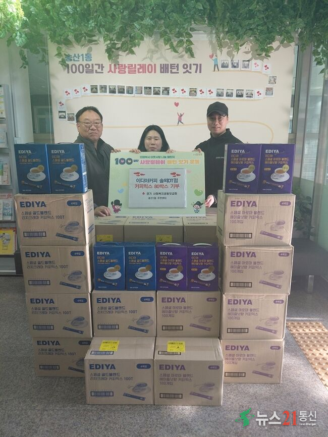 이번 기탁은 ‘100일간 사랑릴레이 배턴 잇기’의 일환으로, 이디야커피 솔뫼DT점은 지난해에 이어 올해도 참여하며 지역 나눔 활동에 지속적으로 동참하고 있다.