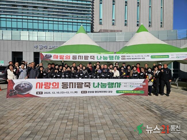 이숙희 온양읍 여성단체협의회장은 “여성단체 회원들이 3일 동안 직접 준비한 팥죽을 함께 드시면서 온양읍 주민들이 따뜻한 연말을 보내길 바란다”며 “새해에는 붉은 팥 기운으로 모두 만사형통하고 건강과 행복이 함께하시길 기원한다”고 말했다.