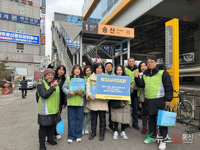 캠페인은 경전철 송산역·탑석역 일대에서 진행됐으며, 홍보물품을 배부하며 주민과 상가를 대상으로 위기가구 제보를 적극 독려했다.