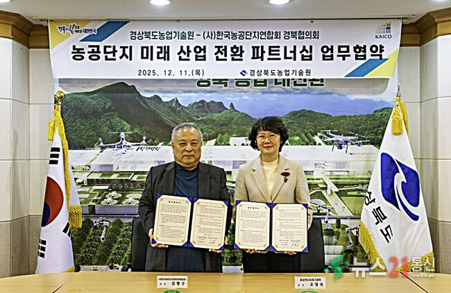 경상북도농업기술원은 11일 (사)한국농공단지연합회 경북협의회(회장 김형구)와 ‘AI 기반 식물공장형 스마트팜 구축 및 농공단지 미래산업 전환’을 위한 업무협약을 체결했다.