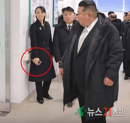 조선중앙통신이 14일 보도한 평안북도 구성시병원 준공식 사진에서 김여정 노동당 부부장이 스마트폰을 쥐고 있는 장면이 확인됐다.