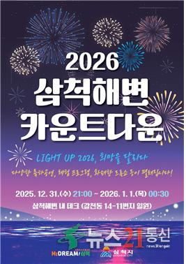 삼척시는 12월 31일 삼척해변 데크무대에서 ‘2026 삼척해변 카운트다운’ 행사를 개최한다.