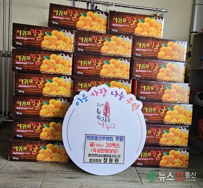 이번에 기탁된 귤은 종천면 관내 경로당 20개소에 전달되어 어르신들의 겨울철 건강 증진에 활용될 예정이다.