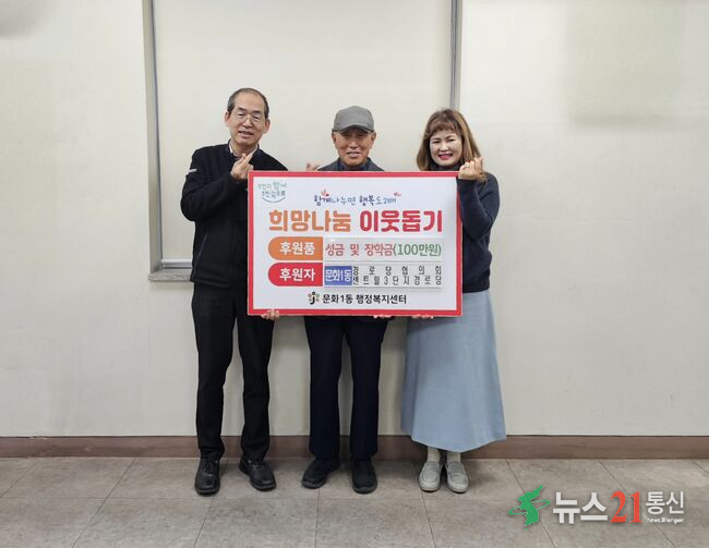 대전 중구 문화1동은 17일 경로당협의회와 센트럴3단지 경로당이 저소득 가정 자녀를 위해 총 100만 원을 후원했다고 밝혔다.