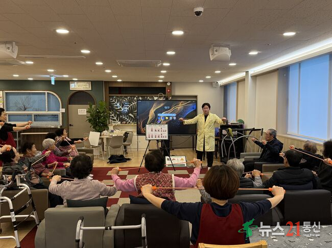 교육은 근감소증 정의와 증상, 필수 영양섭취 가이드, 스트레칭밴드를 활용한 근력 강화 운동 실습 등으로 구성됐다.
