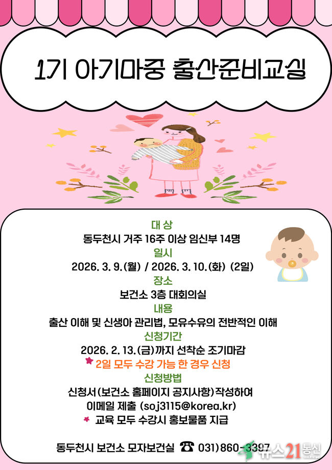 동두천시보건소, 임신부 대상 ‘아기마중 출산준비교실’ 운영