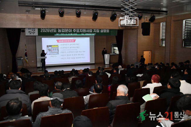 [뉴스21 통신=이준범] 담양군은 지난 22일 담빛농업관 대강당에서 관내 농업인을 대상으로 ‘2026년도 농업 분야 주요 지원사업 지침설명회’를 열고 내년도 농업 보조사업의 추진 방향과 세부 내용을 발표했다.