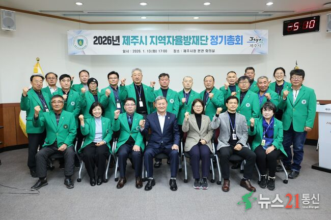 김완근 제주시장은 13일 시청 본관 회의실에서 열린 2026년 제주시 지역자율방재단 정기총회에 참석해 단체장들과 소통하며 지난 한 해 재난 대응 활동에 감사의 뜻을 전했다.