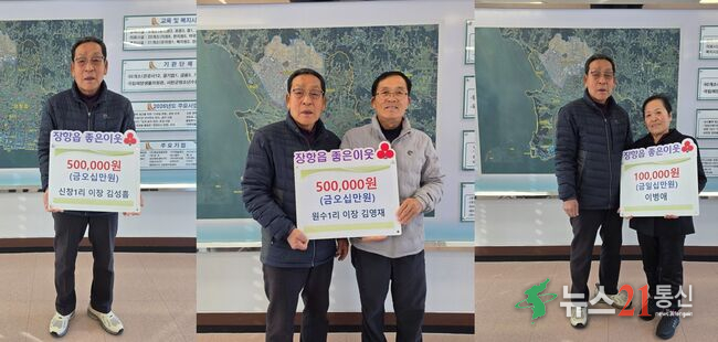장항읍에 연초부터 따뜻한 나눔의 손길이 이어지며 지역사회에 온기를 전하고 있다. 이번 후원에는 김성흠 신창1리 이장 50만원, 김영재 원수1리 이장 50만원, 이병애 씨 10만원 등 총 110만원의 성금이 모였다.