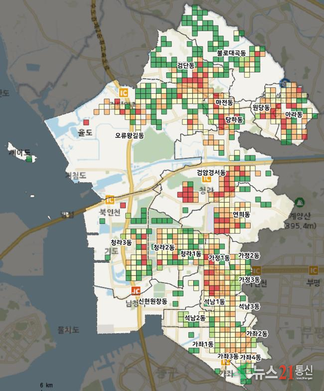 분석 결과 고위험 지역 73개소가 도출됐으며, 검암경서동, 오류왕길동, 검단동 일대가 상대적으로 높은 위험을 보였다.