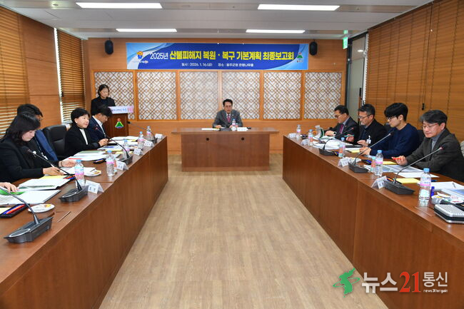 이번 보고회는 지난해 3월 발생한 온양과 언양 산불 관련 피해 복구 추진현황을 점검하고 향후 계획을 논의하기 위해 마련됐다. 이날 참석자들은 앞서 지난달 열린 중간보고회에서 수렴한 주민 의견이 반영된 복구계획(안)에 대해 의견을 나눴다.