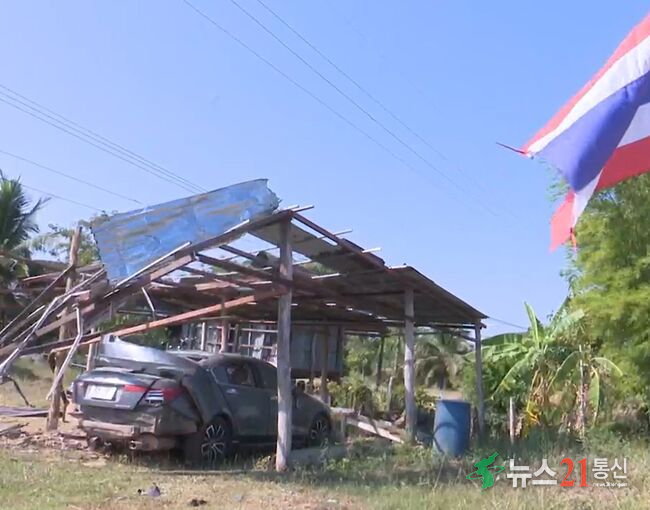 지난달 태국과 캄보디아가 국경 지역에서 벌인 무력 충돌로 포탄을 맞은 주택의 지붕과 벽은 크게 무너졌고, 마을 곳곳에는 아직 제거되지 않은 파편과 불발탄 위험이 도사리고 있어 주민들의 귀환은 쉽지 않은 상태다.