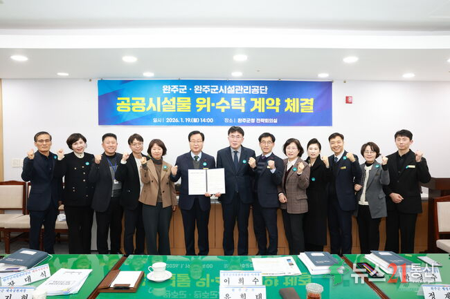 이날 체결식에는 유희태 완주군수와 소관 부서장, 이희수 완주군시설관리공단 이사장과 공단 팀장 등 10여 명이 참석했다. 행사에서는 공단의 2025년 운영 성과와 올해 운영 계획을 공유하고, 위·수탁 계약서를 교환했다.