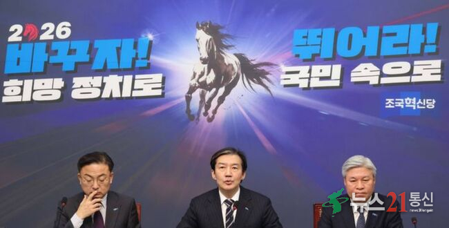 [뉴스21 통신=추현욱 ] 조국 조국혁신당 대표가 정청래 더불어민주당 대표의 합당 제안에 "국민의 마음, 뜻이 가리키는 방향에 따라 논의하고 결정할 것"이라고 밝혔다.