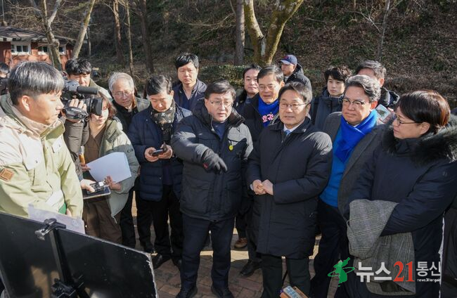 김성환 기후부 장관 우치동물원 방문[뉴스21통신/장병기 기자] 광주광역시는 22일 김성환 기후에너지환경부 장관이 강기정 시장과 함께 우치동물원을 방문해 판다 입식 준비 상황을 점검했다고 밝혔다.