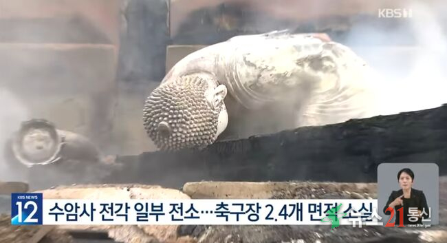 산림 소실 면적은 약 1만7380㎡로, 축구장 약 2.5배 규모로 추정된다. 수암사 사찰 3개 동은 전소된 것으로 확인됐다.