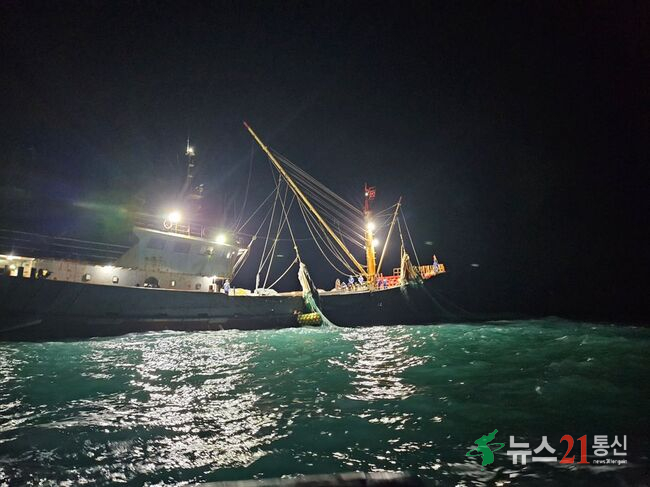 [뉴스21 통신=박민창 ] 대한민국 배타적경제수역에서 무허가로 조업을 하던 중국 국적 범장망 어선 2척이 목포해양경찰에 의해 나포됐다.