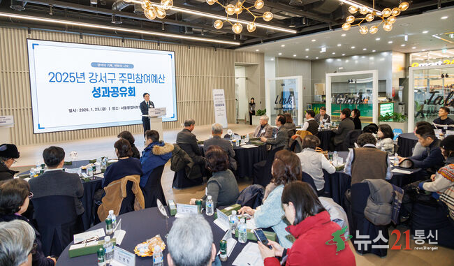 서울 강서구(구청장 진교훈)는 지난 23일(금) 서울창업허브 엠플러스(마곡중앙8로 14)에서 주민참여예산위원회 및 각 동 주민자치회장 50여 명이 참석한 가운데 ‘2025년 강서구 주민참여예산 성과공유회’를 개최했다.