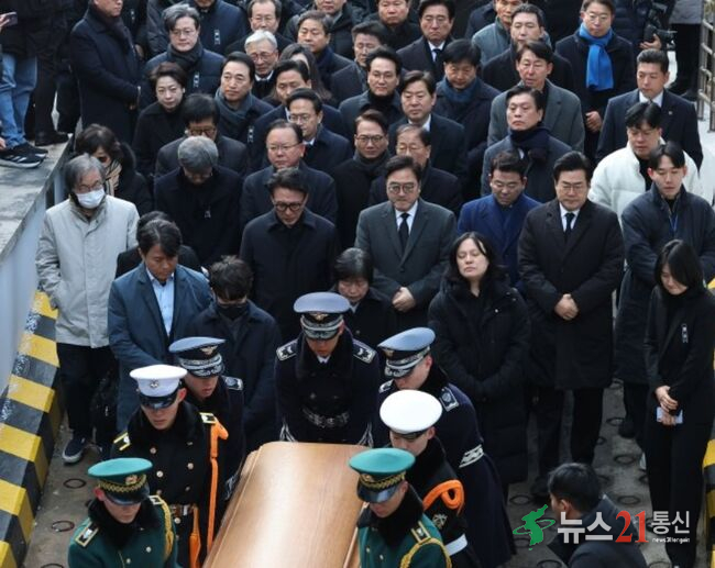 [뉴스21 통신=추현욱 ] 베트남 출장 중 별세한 고(故) 이해찬 전 국무총리의 시신이 27일 국내로 운구됐다. 우원식 국회의장과 정청래 더불어민주당 대표, 김민석 국무총리 등 여권 인사들이 영접했다.