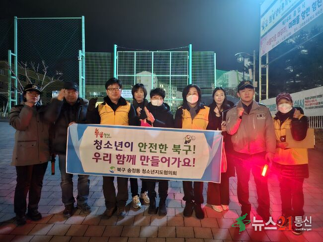 북구 송정동 청소년지도협의회는 지난 26일 밤 송정동 상가 밀집지역을 중심으로 건전한 청소년 성장 환경 조성을 위한 유해환경 점검 활동을 실시했다.