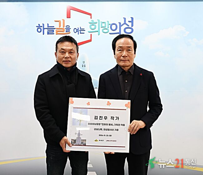 의성군(군수 김주수)은 의성읍 향교길 57-4에 위치한 의성성냥공장에서 2025년 11월 18일부터 2026년 1월 10일까지 개최된 김진우 작가의 기획전이 성황리에 마무리된 가운데, 전시 작품을 작가로부터 기증받았다고 밝혔다.