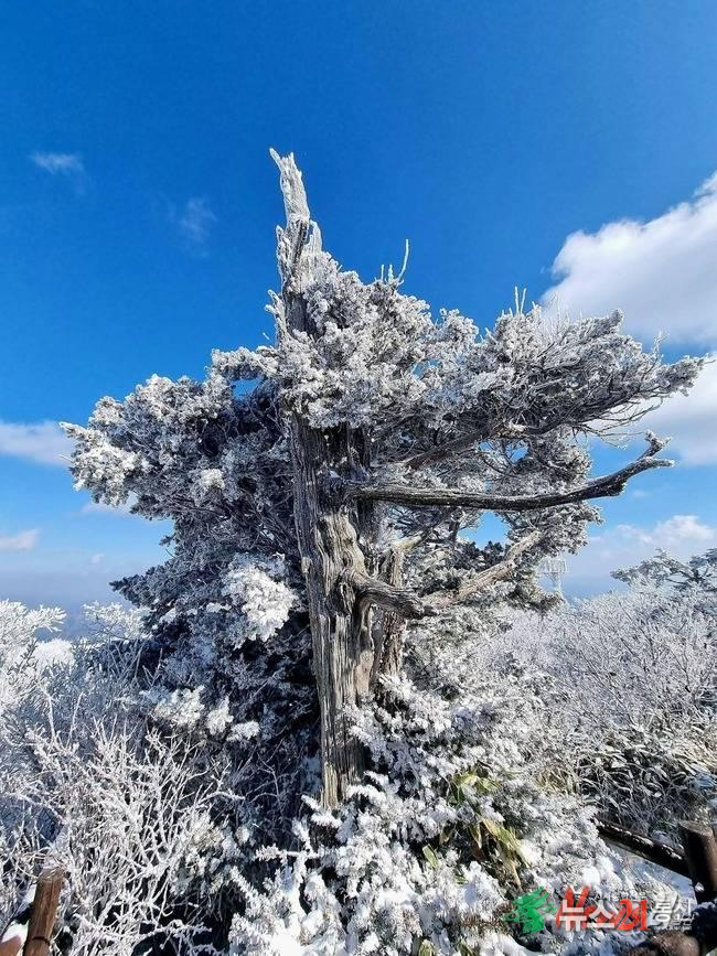 차가운 안개와 수증기가 나무에 얼어붙어 눈꽃처럼 보이는 것이 특징이다.