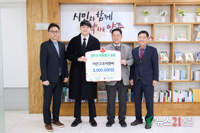 양주시 관계자는 “이안구조이앤씨의 따뜻한 나눔에 깊이 감사드리며, 성금을 소중히 활용해 취약계층의 삶에 실질적인 도움이 될 수 있도록 최선을 다하겠다”고 말했다.