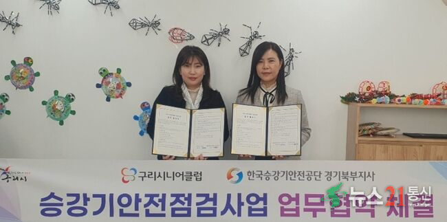 구리시(시장 백경현)는 구리시니어클럽(관장 김수지)이 지난 1월 28일 한국승강기안전공단 경기북부지사(지사장 강인숙)와 「노인 일자리 창출 및 지역사회 안전 강화를 위한 업무협약(MOU)」을 체결했다고 밝혔다.