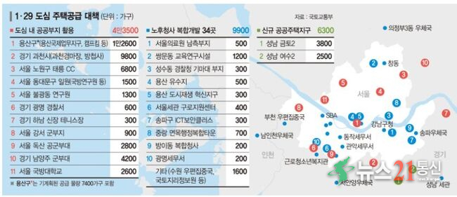 [뉴스21 통신=추현욱 ] 정부가 서울·수도권 도심 공공부지를 활용해 4만3500가구를 공급한다.