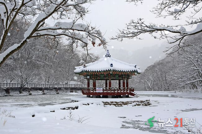 내장산국립공원내 우화정의 설경[사진=정읍시 제공]