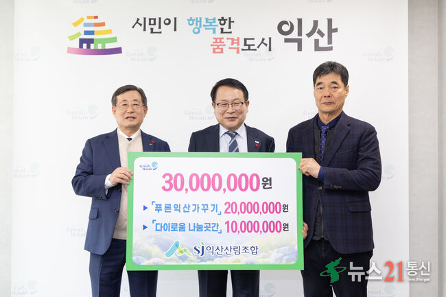 익산시는 '익산산림조합(조합장 김수성)'이 지역의 녹색환경 조성과 취약계층 지원을 위해 총 3,000만 원의 성금을 기탁했다고 28일 밝혔다.