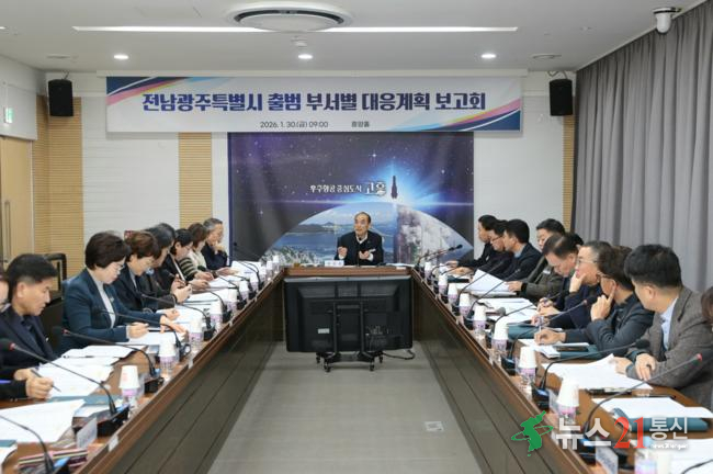 사진 = 전라남도 고흥군청고흥군(군수 공영민)은 1월 30일 군청 흥양홀에서 부군수 주재로 부서장과 관계 공무원이 참석한 가운데 전남광주특별시 출범에 따른 부서별 대응계획 보고회를 개최했다고 밝혔다.