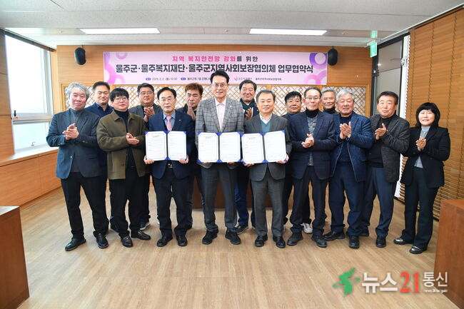 울산 울주군은 2일 군청 은행나무홀에서 울주복지재단, 울주군지역사회보장협의체와 함께 지역 복지안전망 강화를 위한 업무협약을 체결했다.