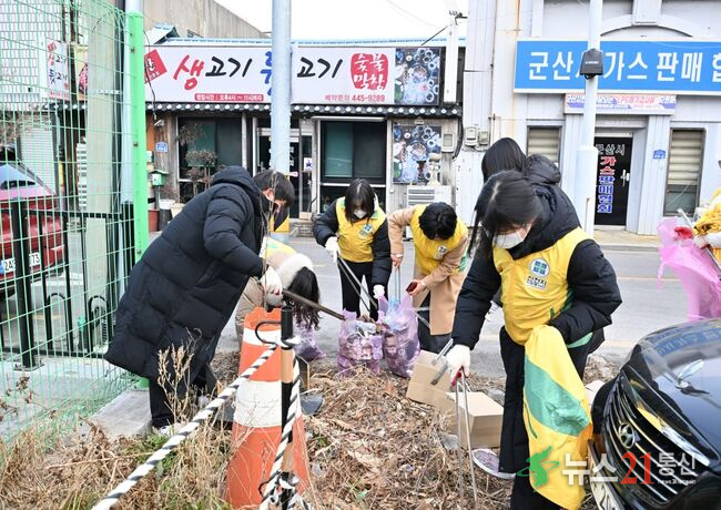 이날 군산지부 30여 명은 짬뽕특화거리 주차장을 찾아 미관을 해치는 일회용기, 음료수병, 비닐, 폐가구 등 생활 쓰레기를 수거했다.