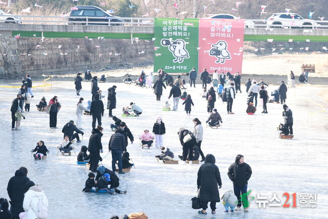 [뉴스21 통신=박철희 ] 지난 1월 31일 의령군 가례면 요도마을 여꾸섬에서 열린 ‘제1회 여꾸섬 빙판썰매축제’에 가족 단위 방문객 2,500여 명이 몰리며 성황을 이뤘다.