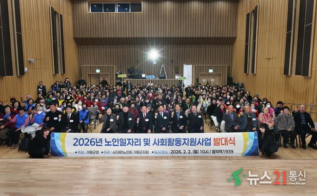 가평군은 이날 오전 음악역1939 1층에서 ‘2026년 노인일자리 및 사회활동지원사업 발대식’을 개최했다. 행사에는 서태원 가평군수를 비롯해 가평군의회 의장과 군의원, 대한노인회 가평군지회 관계자, 노인일자리 참여 어르신 등 약 250명이 참석해 사업 시작을 함께했다.