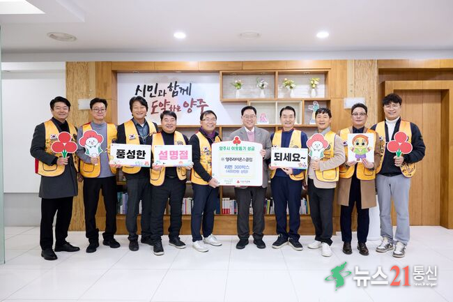 양주시가 5일 양주라이온스클럽(회장 이석호)으로부터 설 명절을 맞아 이웃돕기 성품으로 라면 300박스 (환가액 400만 원)를 기탁받았다고 밝혔다. 이날 기탁식에는 이석호 회장을 비롯한 클럽 회원이 참석해 지역사회와 함께하는 나눔의 뜻을 전했다. 전달된 성품은 경기 사회복지공동모금회를 거쳐 양주시 취약계층과 무한돌봄행복팀 등 관...