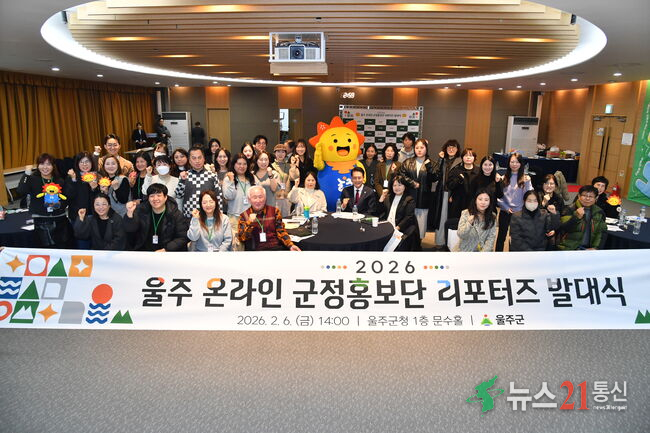 울산 울주군이 6일 군청 문수홀에서 온라인 군정홍보단 ‘리포터즈(Reporters)’ 2기 발대식을 개최했다.이날 행사는 이순걸 군수와 리포터즈 단원 등이 참여한 가운데 울주군 홍보영상 시청을 시작으로 경과보고, 위촉장 수여, 오리엔테이션 순으로 진행됐다.‘리포터즈’는 ‘리포터(Reporter)’와 ‘서포터(Supporter)’..