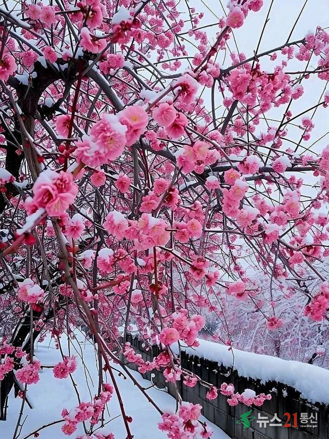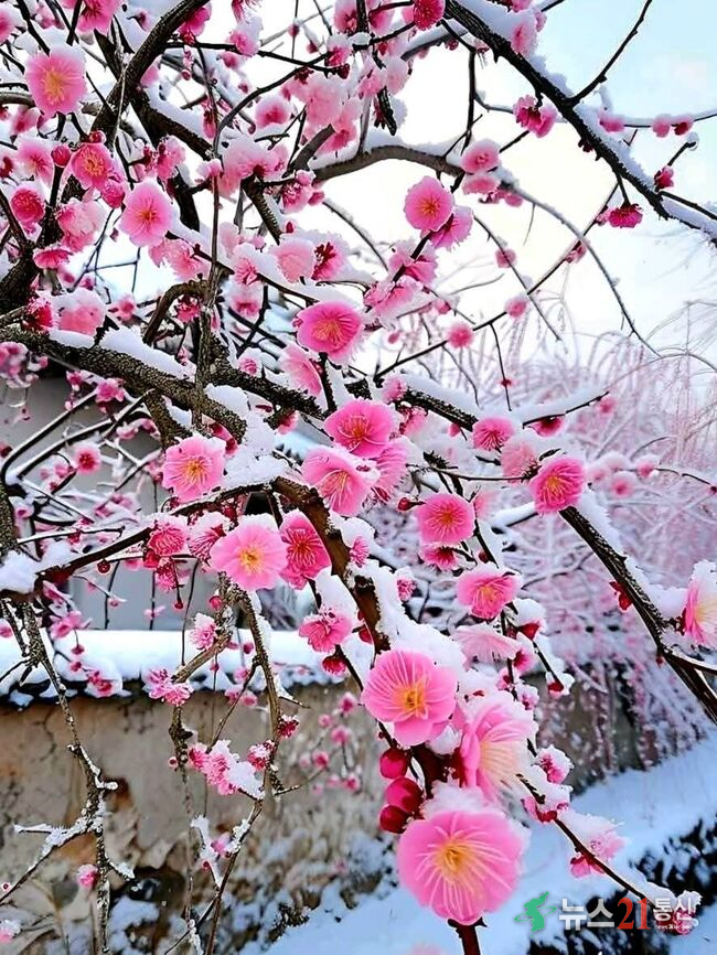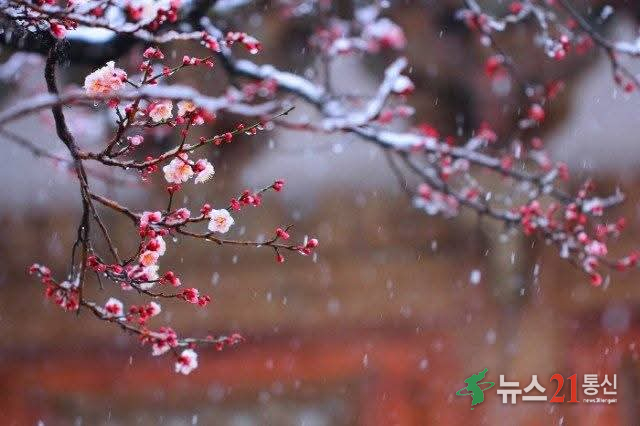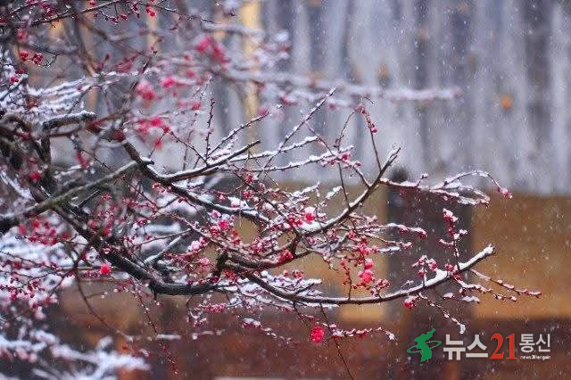 눈 덮인 풍경 속 붉은 매화의 대비가 뛰어나 회화와 문학의 단골 소재가 됐다.