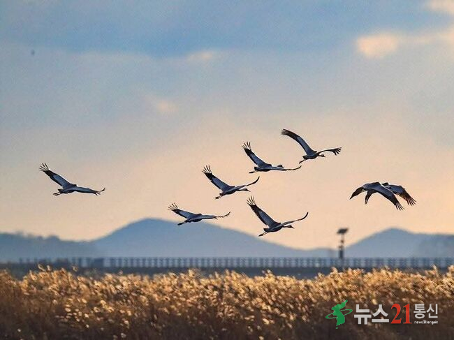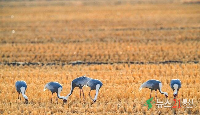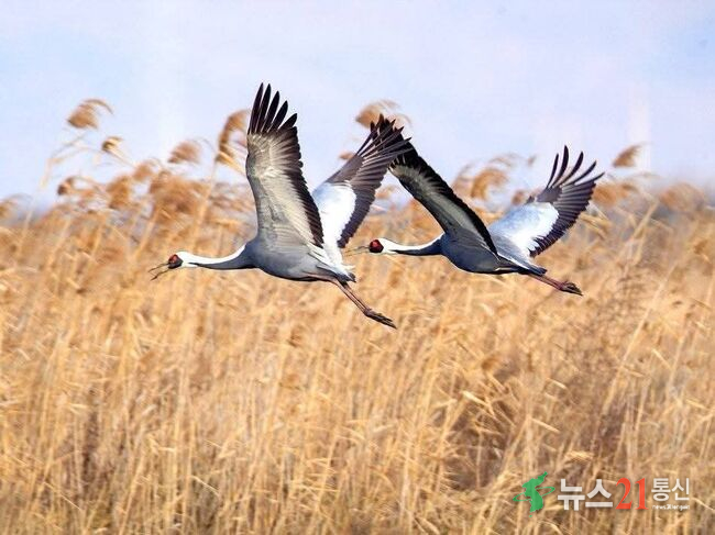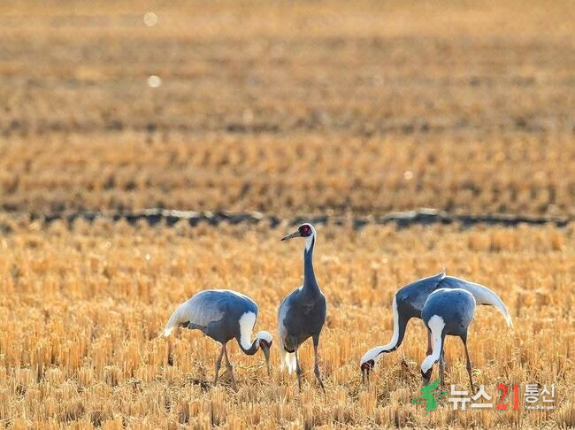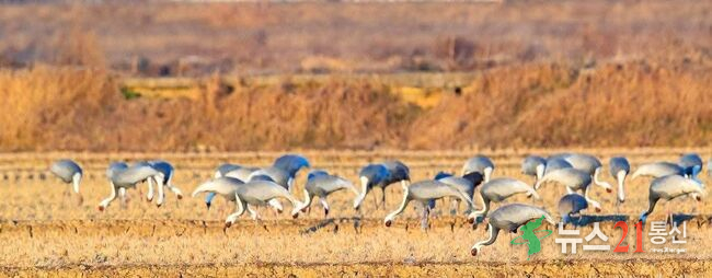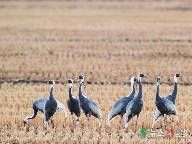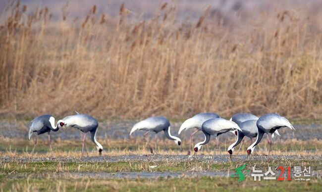 두루미, 재두루미 등 다른 겨울철새와 함께 서식한다.